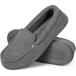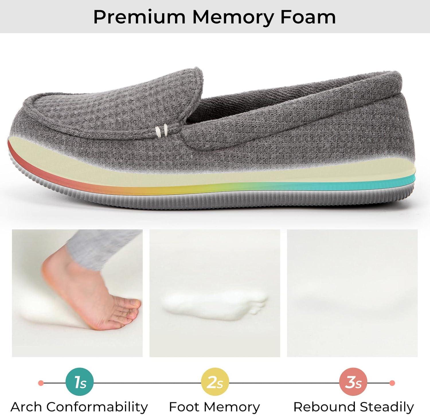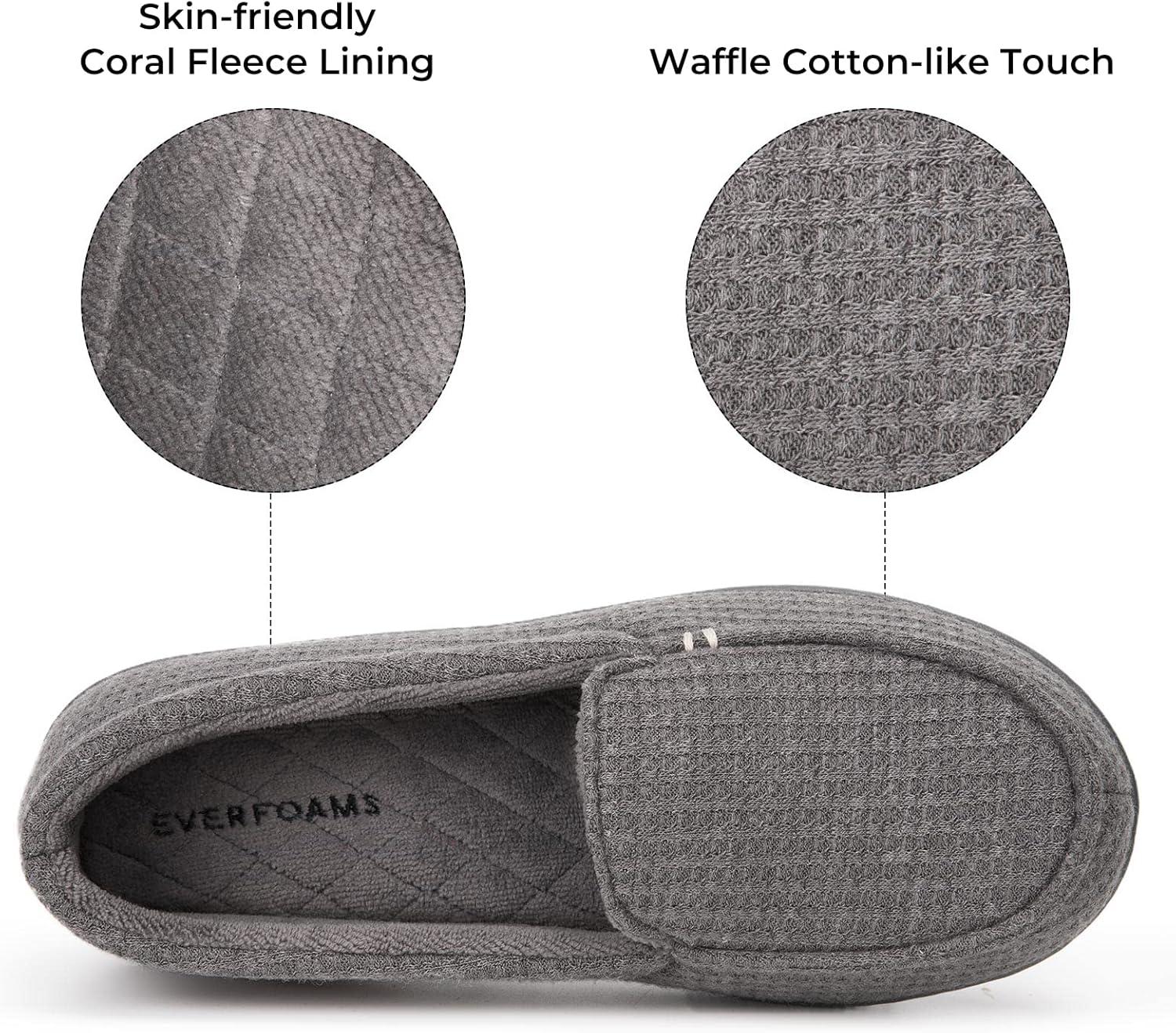 EverFoams Women’s Lightweight Indoor Outdoor Memory Foam House Shoes, Comfy Breathable Waffle Knitted Moccasins Loafer Slippers Grey, 7 US