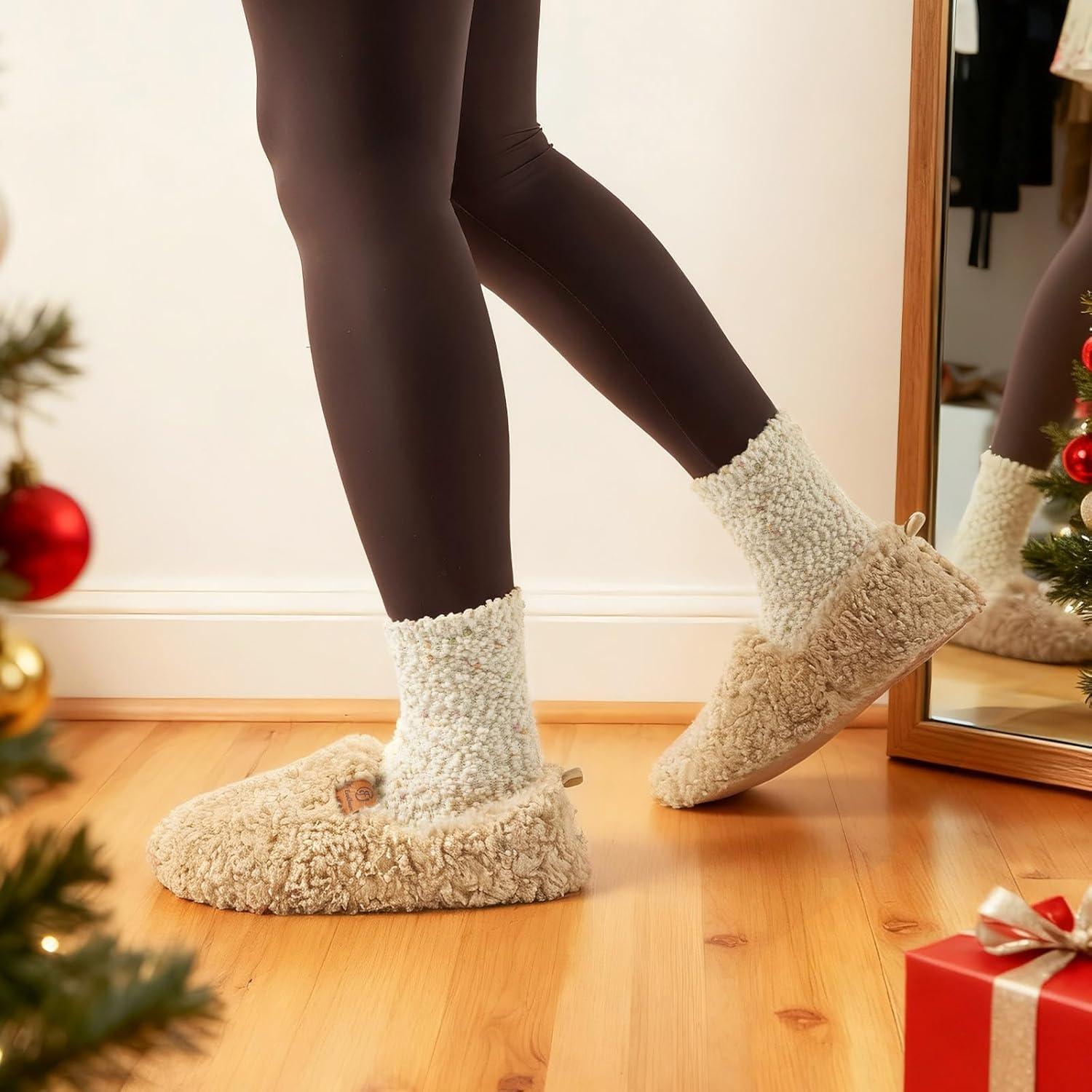 EverFoams Warm Women’s Slippers Socks Set – Soft Full Cozy Loafer Slippers (Size 7-8, Khaki) – Cozy Chenille Socks 3-Pair Set (Free Size, Cute Girly)