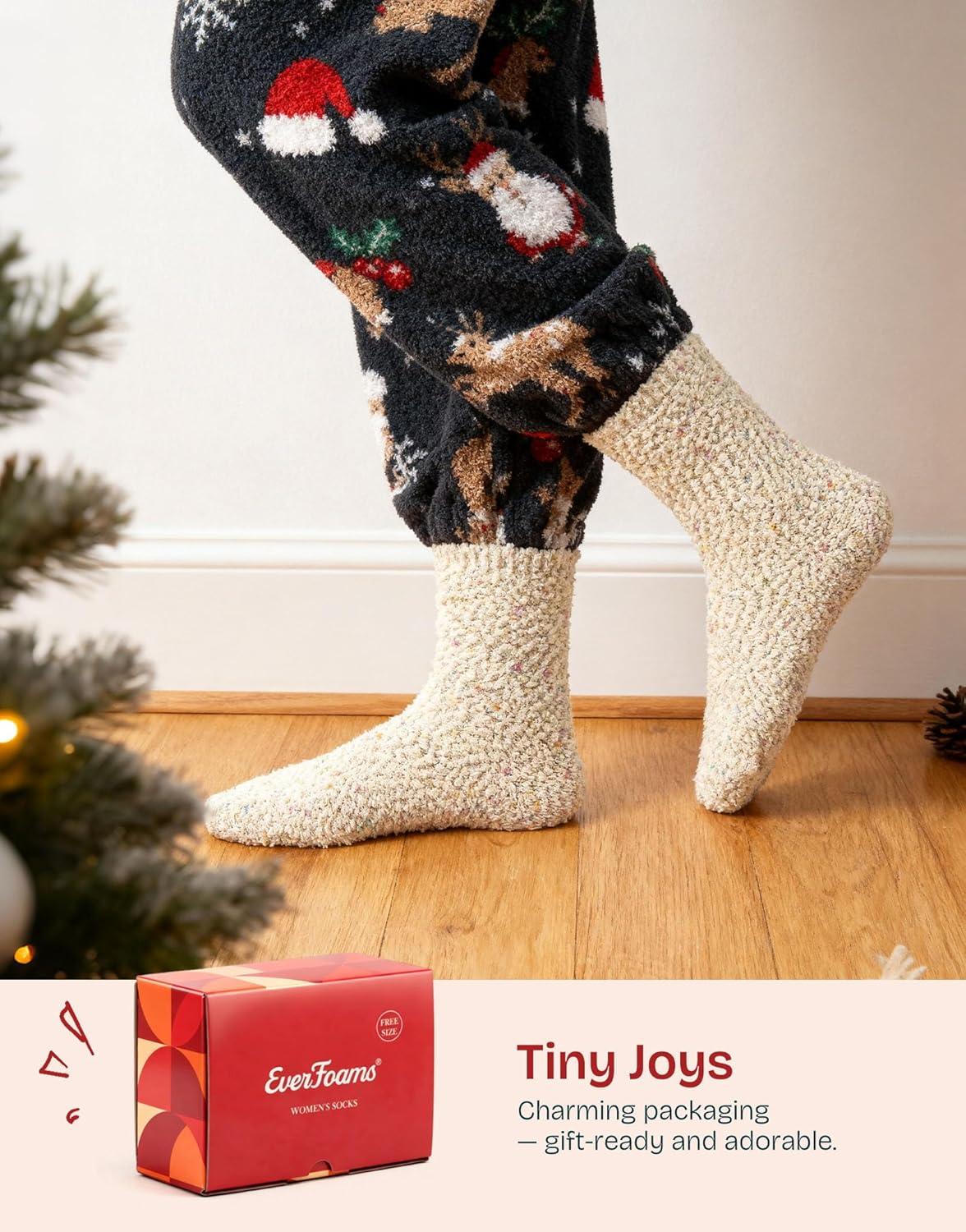 EverFoams Warm Women’s Slippers Socks Set – Soft Full Cozy Loafer Slippers (Size 8.5, Grey) – Cozy Chenille Socks 3-Pair Set (Free Size, Fairy Fluff)