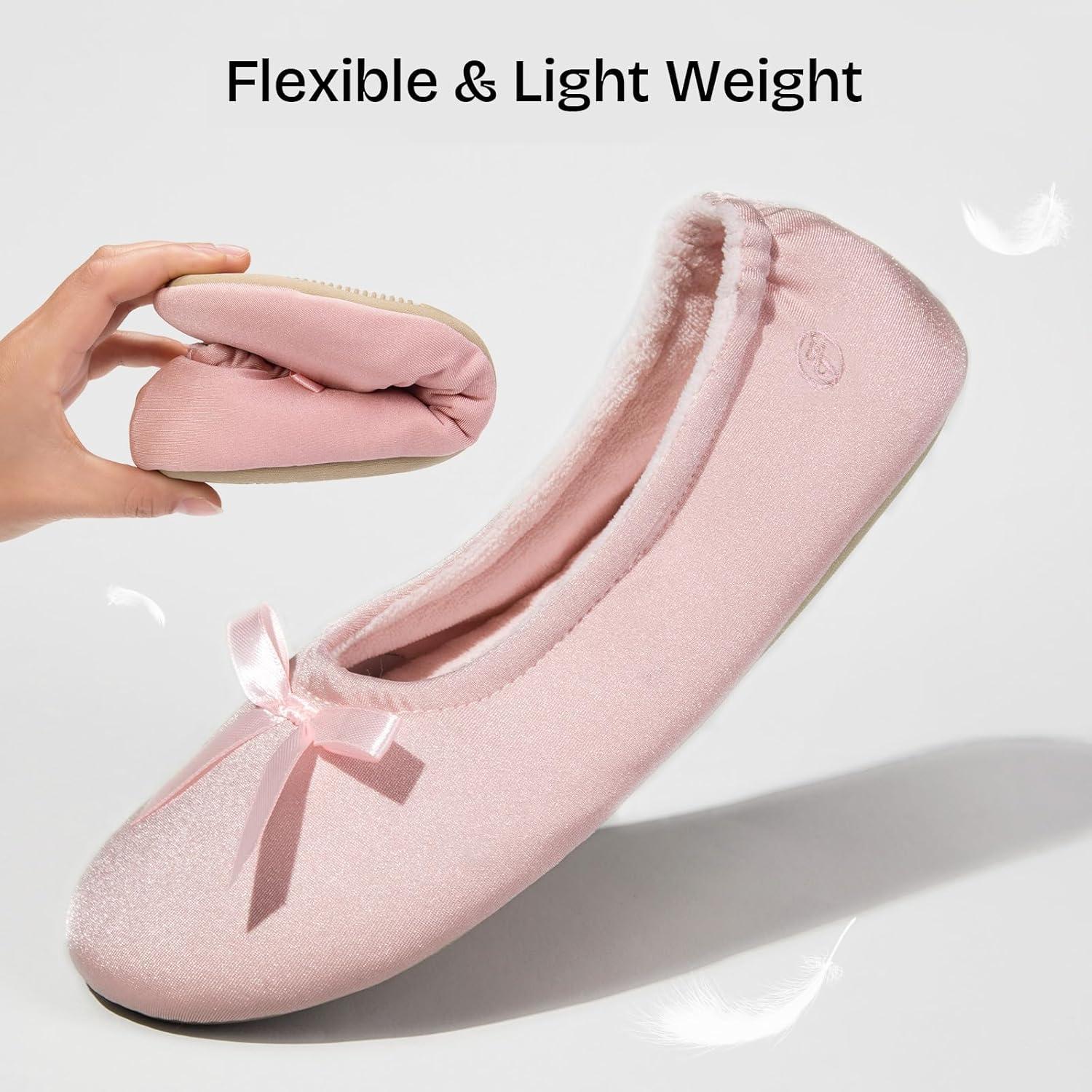 EverFoams Women’s Satin Memory Foam Ballerina Slippers Cute House Shoes with Indoor Rubber Sole(Pink)