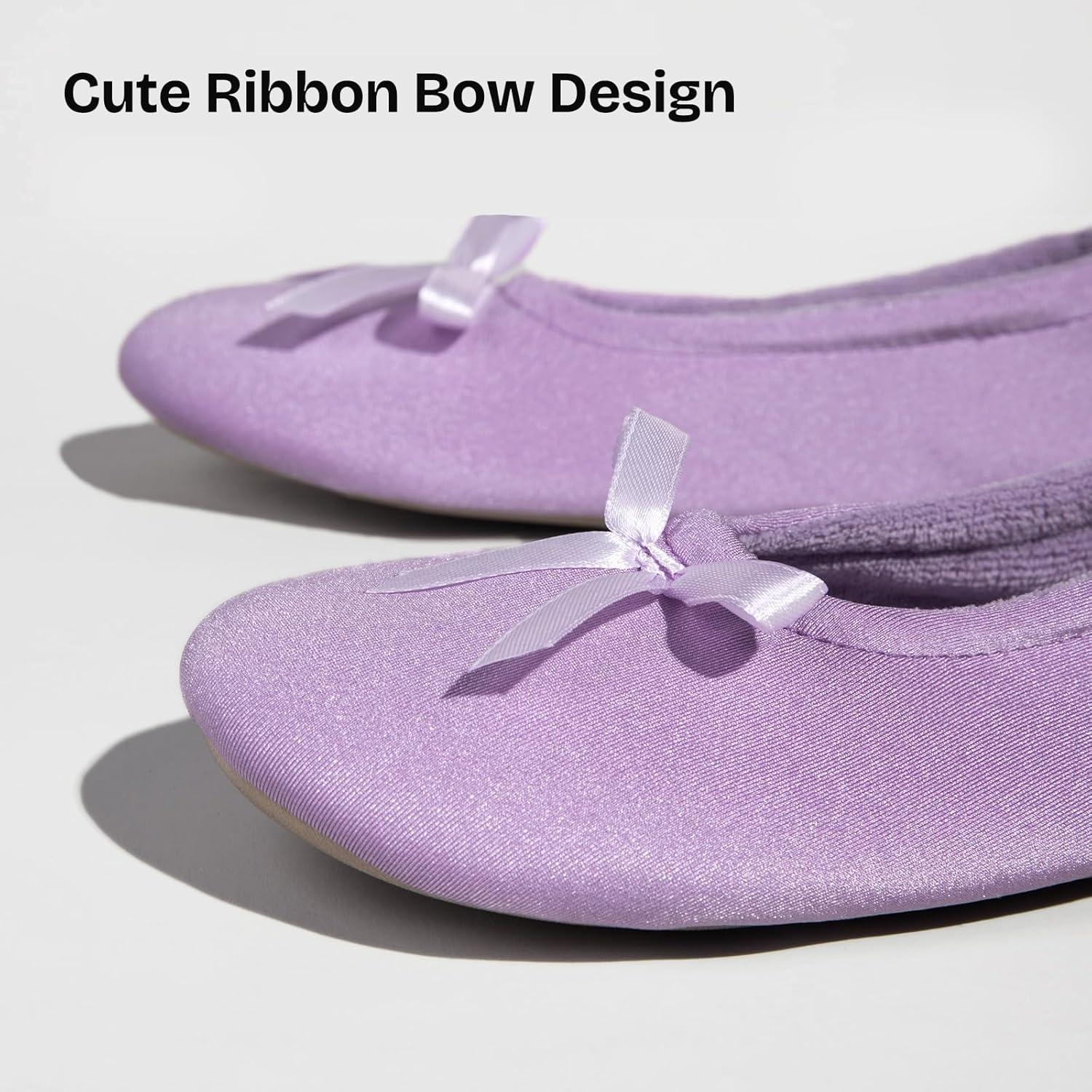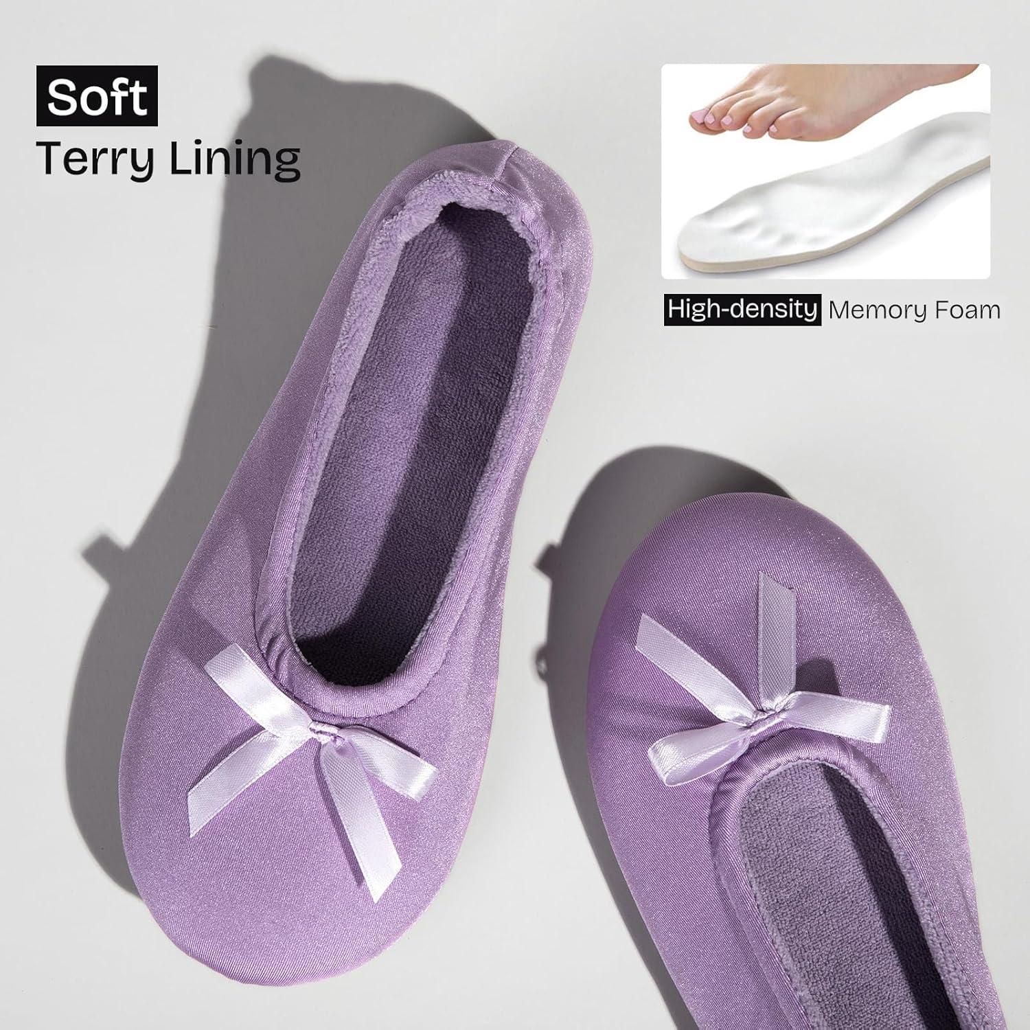 EverFoams Women’s Satin Memory Foam Ballerina Slippers Cute House Shoes with Indoor Rubber Sole(Purple)