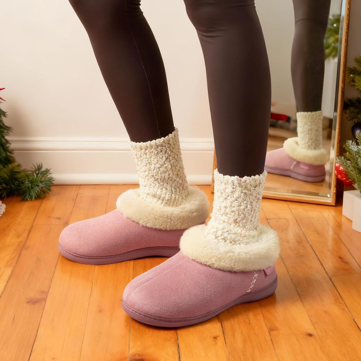 EverFoams Women’s Winer Slipper Socks Set – Women’s Microsuede Slippers (Size 7-8, Pink) – Cozy Chenille Socks 3-Pair Set (Free Size, Timeless Mix)