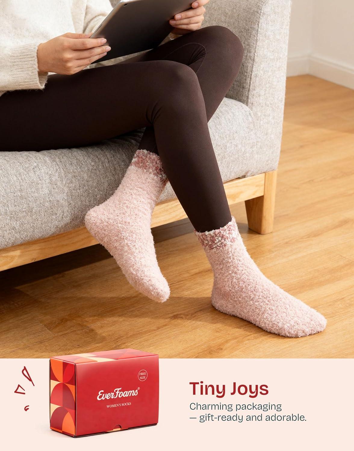 EverFoams Women’s Winer Slipper Socks Set – Women’s Microsuede Slippers (Size 9-10, Pink) – Cozy Chenille Socks 3-Pair Set (Free Size, Fairy Fluff)