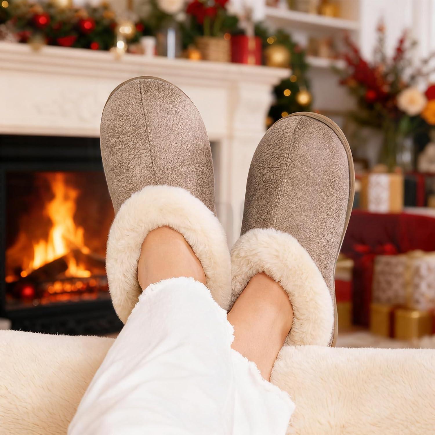 EverFoams Women’s Soft Curly Full Slippers Memory Foam Lightweight House Shoes Cozy Loafer with Polar Fleece Lining(Dark Aubergine)