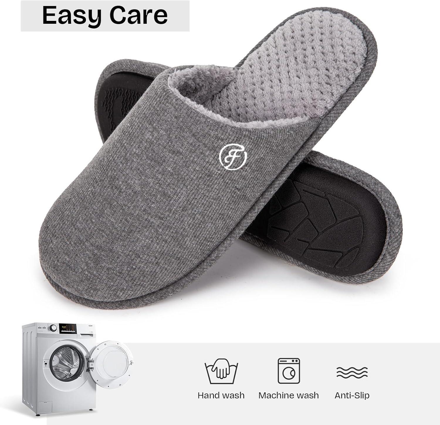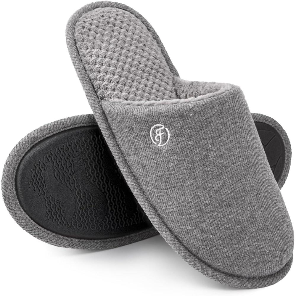 EverFoams Men’s Cotton Knit Slippers Lightweight Memory Foam Indoor House Shoes with Anti-Skid Sole(Grey)