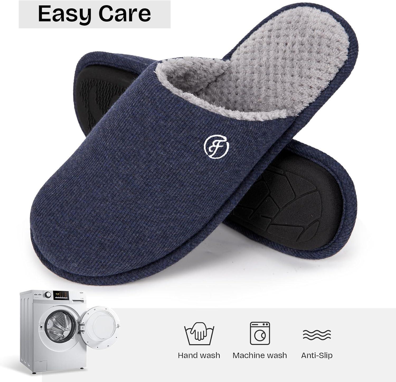EverFoams Men’s Cotton Knit Slippers Lightweight Memory Foam Indoor House Shoes with Anti-Skid Sole(Navy Blue)