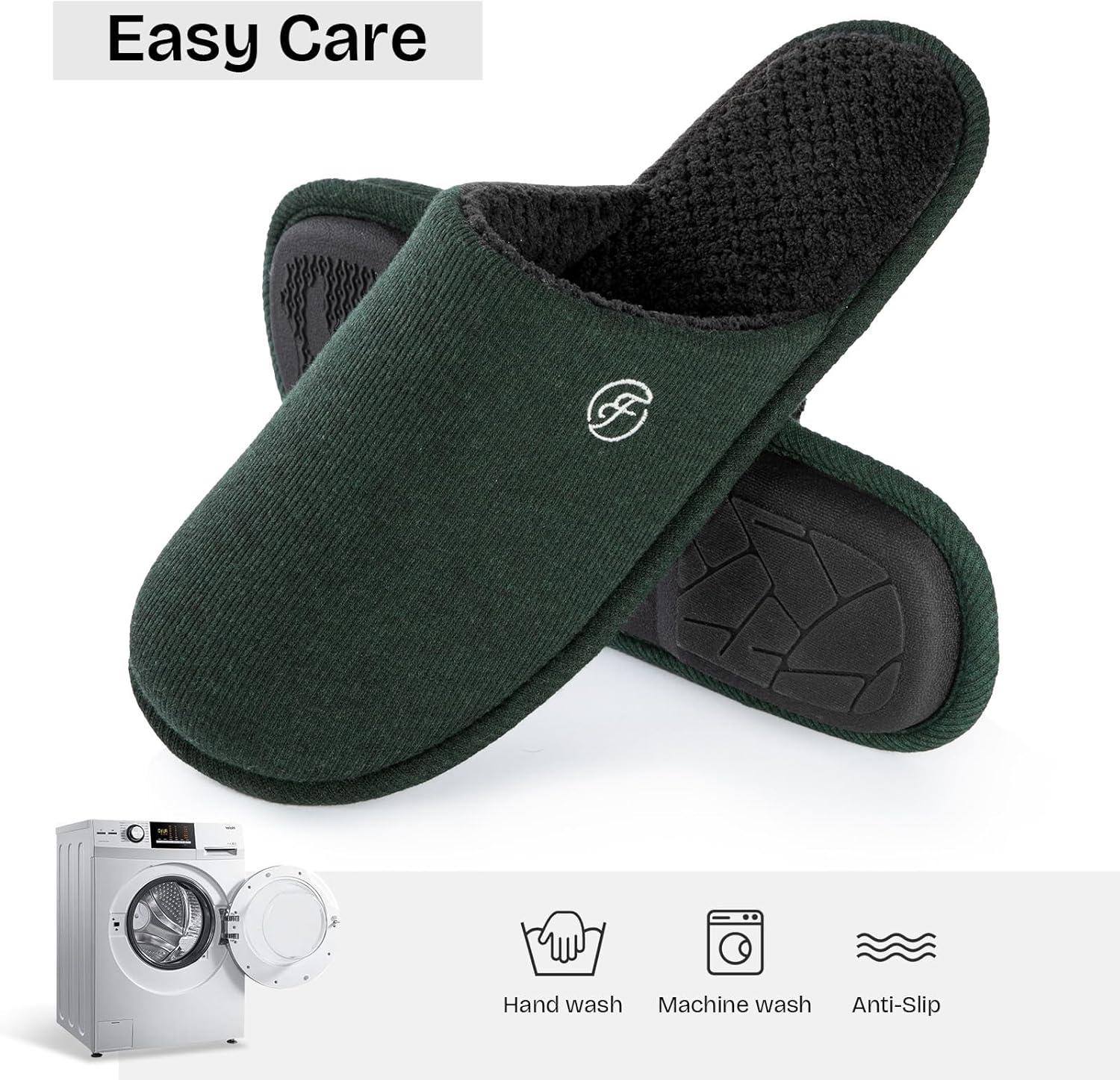 EverFoams Men’s Cotton Knit Slippers Lightweight Memory Foam Indoor House Shoes with Anti-Skid Sole(Viridian Green)