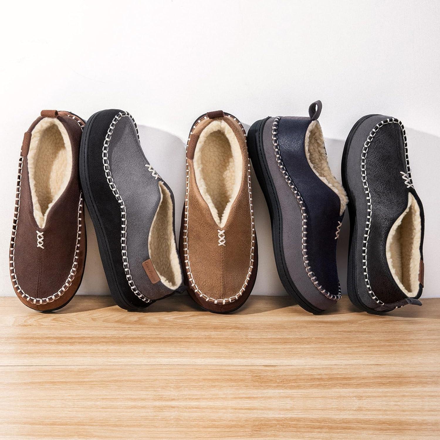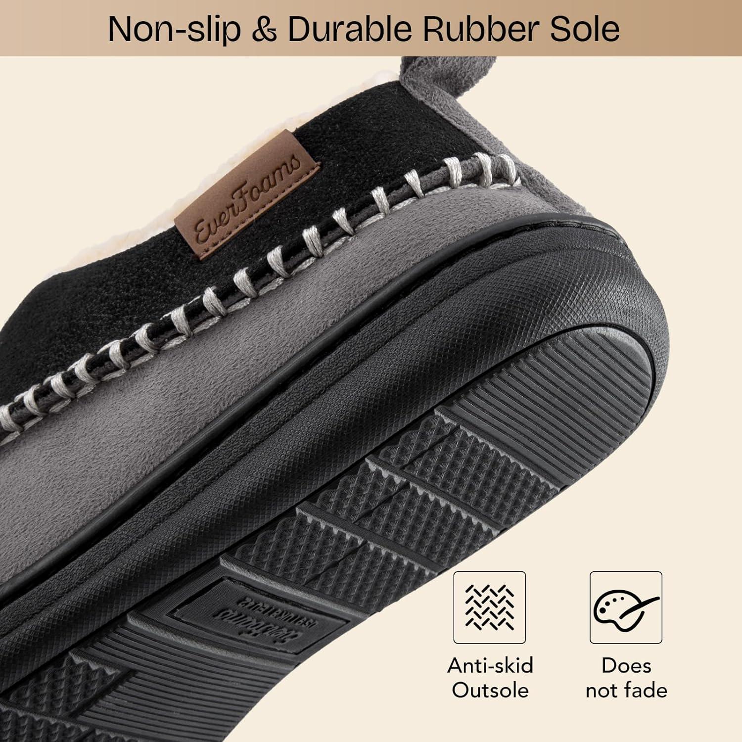 EverFoams Men’s Moccasin Slippers Memory Foam Indoor/Outdoor Warm Suede House Shoes with Fuzzy Sherpa Lining(Black)