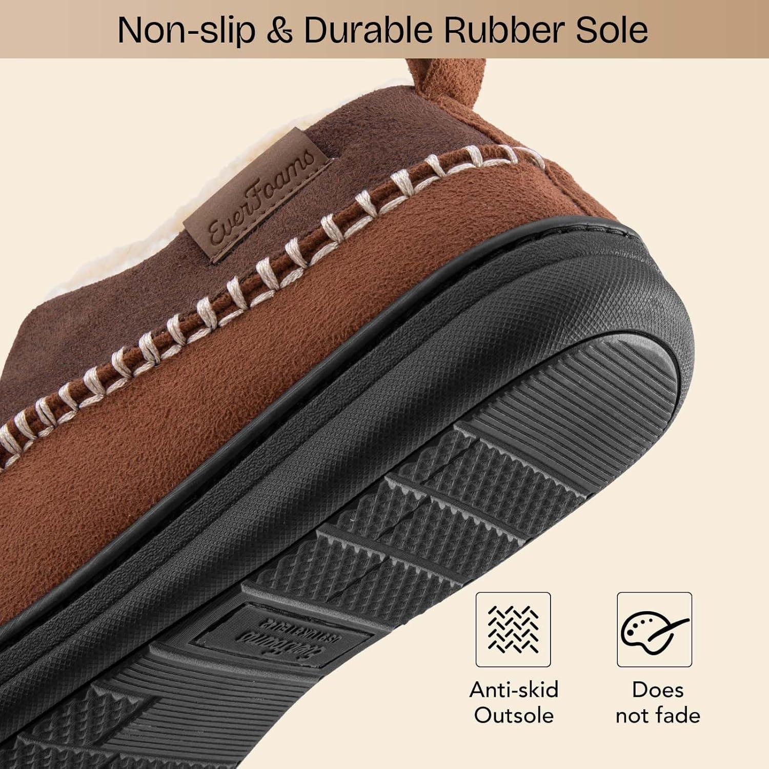EverFoams Men’s Moccasin Slippers Memory Foam Indoor/Outdoor Warm Suede House Shoes with Fuzzy Sherpa Lining(Coffee)
