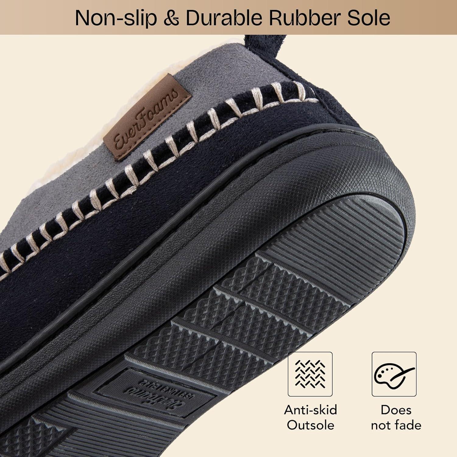 EverFoams Men’s Moccasin Slippers Memory Foam Indoor/Outdoor Warm Suede House Shoes with Fuzzy Sherpa Lining(Grey)