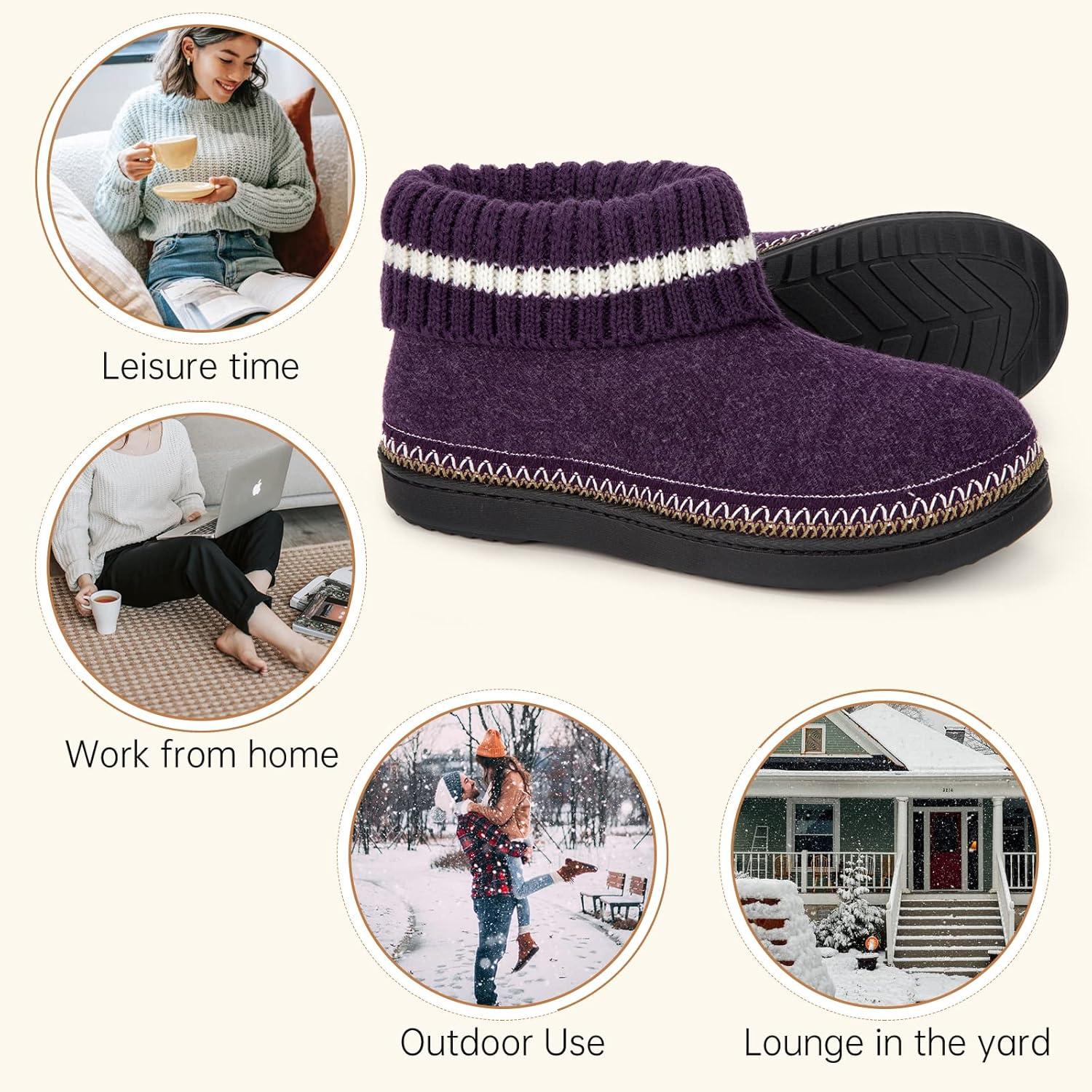 EverFoams Women’s Bootie Slippers Non-slip Comfy Winter Indoor House Shoes with Knitted Collar(Purple)
