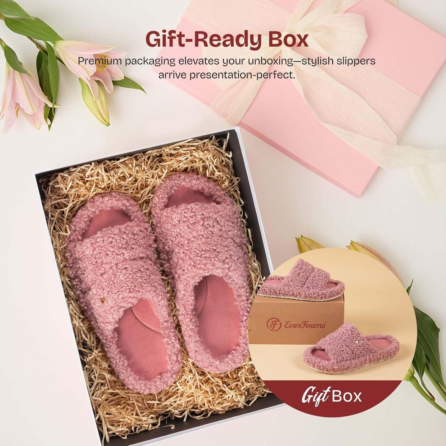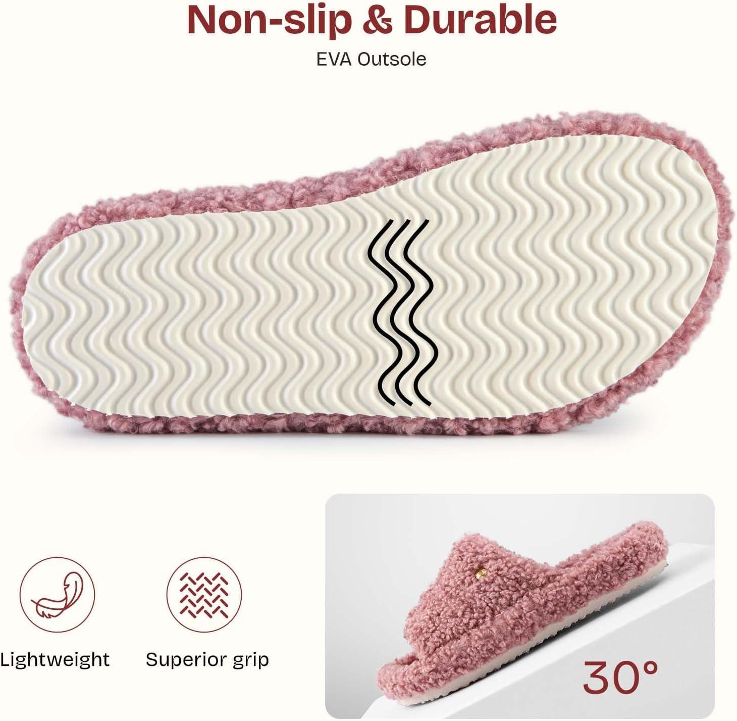 EverFoams Women’s Fashionable Open-toe Slippers with Cozy Plush Non-Slip Sole(Blush Pink)