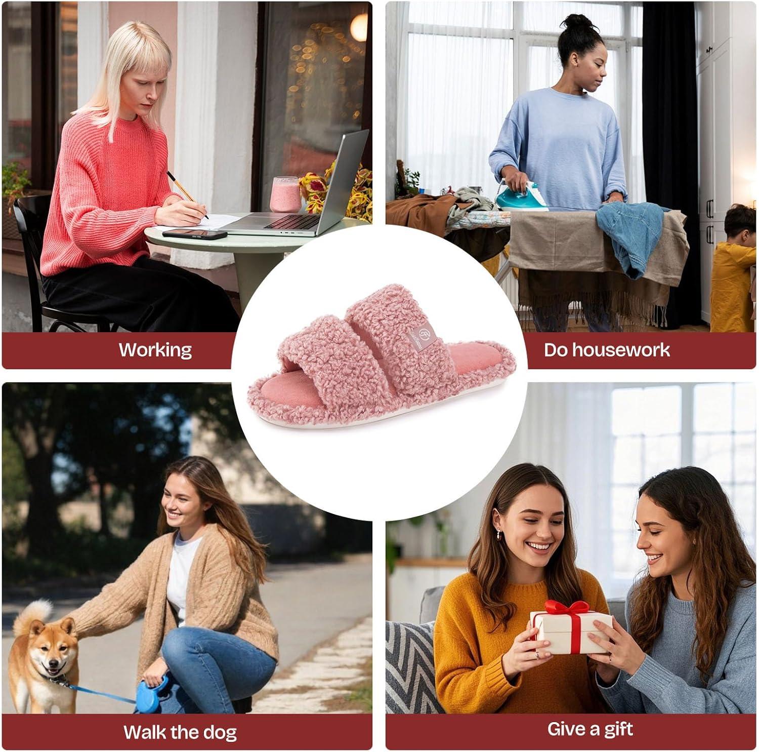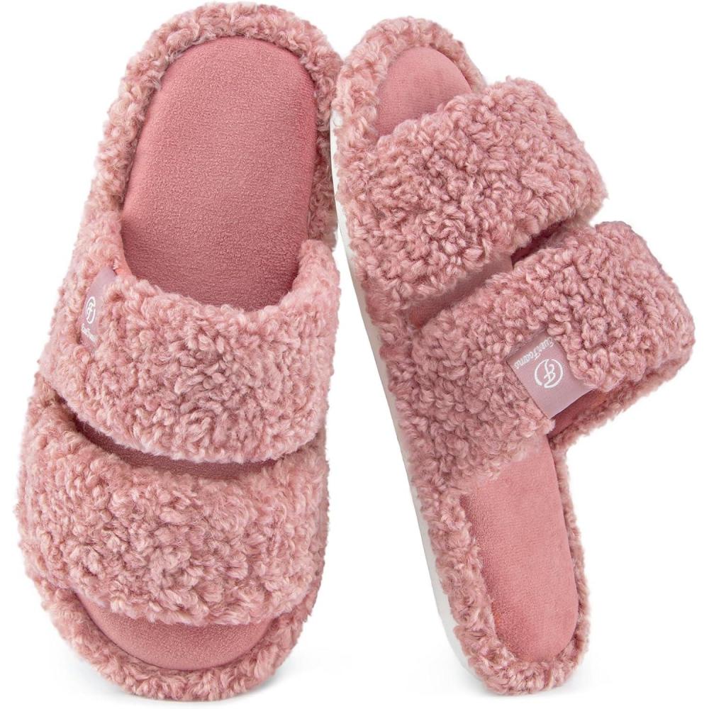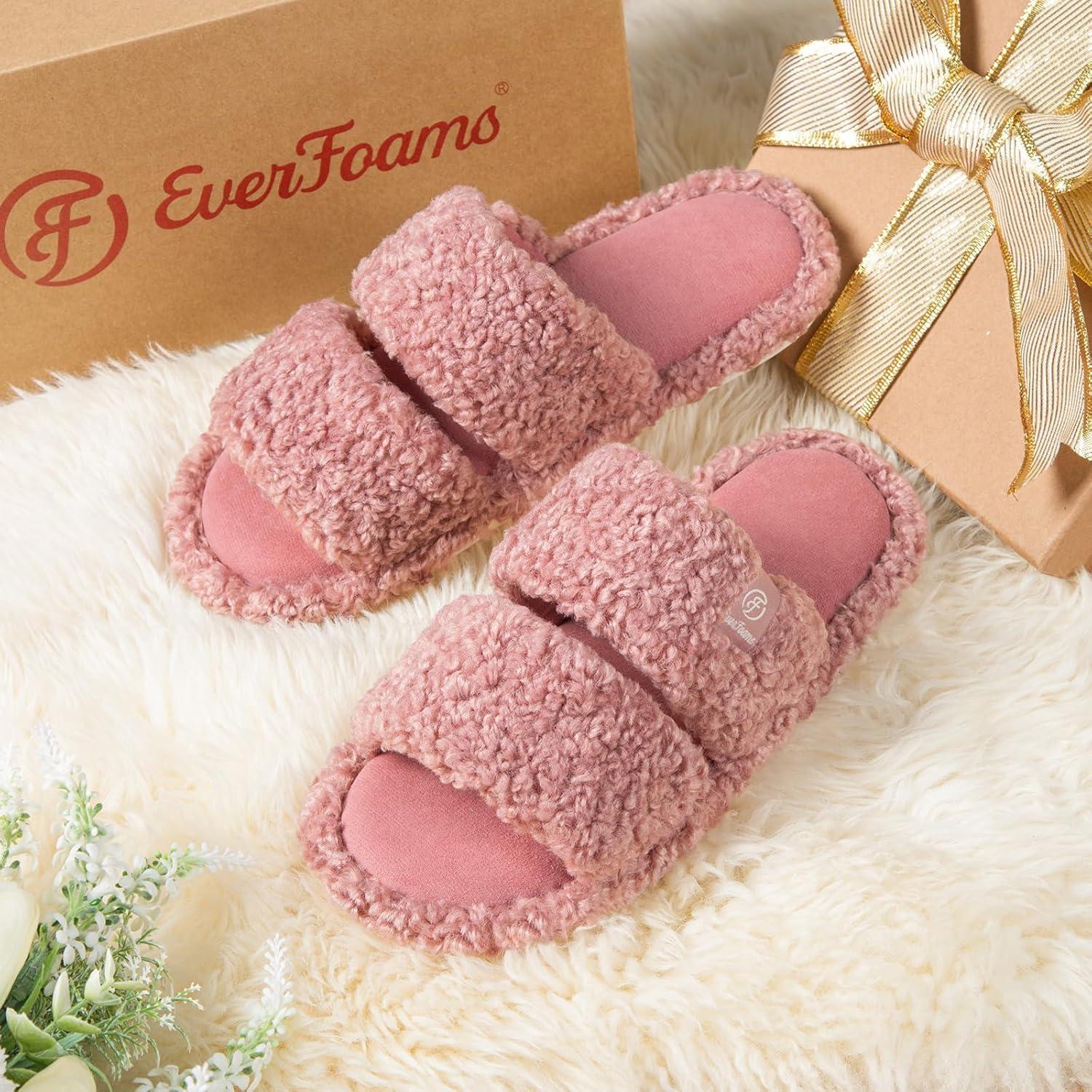 EverFoams Women’s Fuzzy Open Toe Slippers Comfy Soft Memory Foam Indoor House Shoes(Dusty Pink)