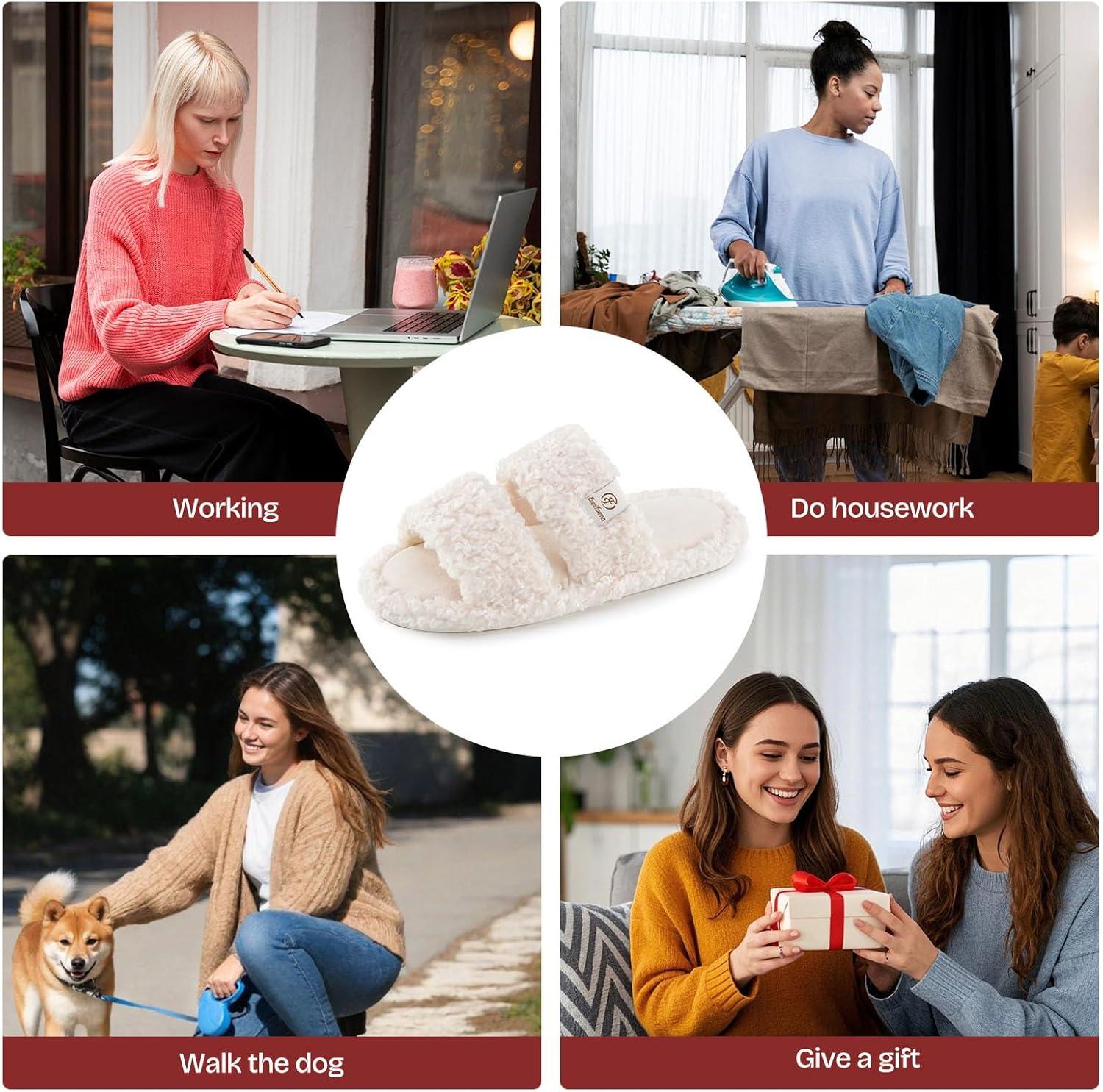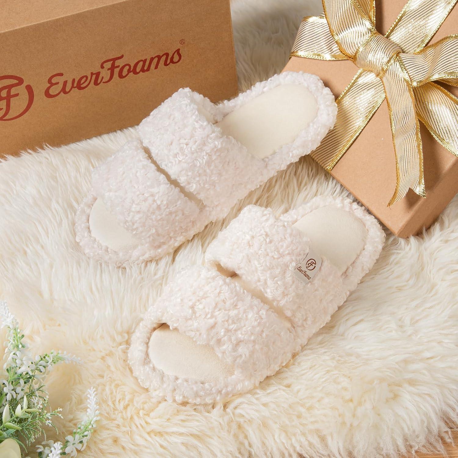 EverFoams Women’s Fuzzy Open Toe Slippers Comfy Soft Memory Foam Indoor House Shoes(Vanilla Ice)