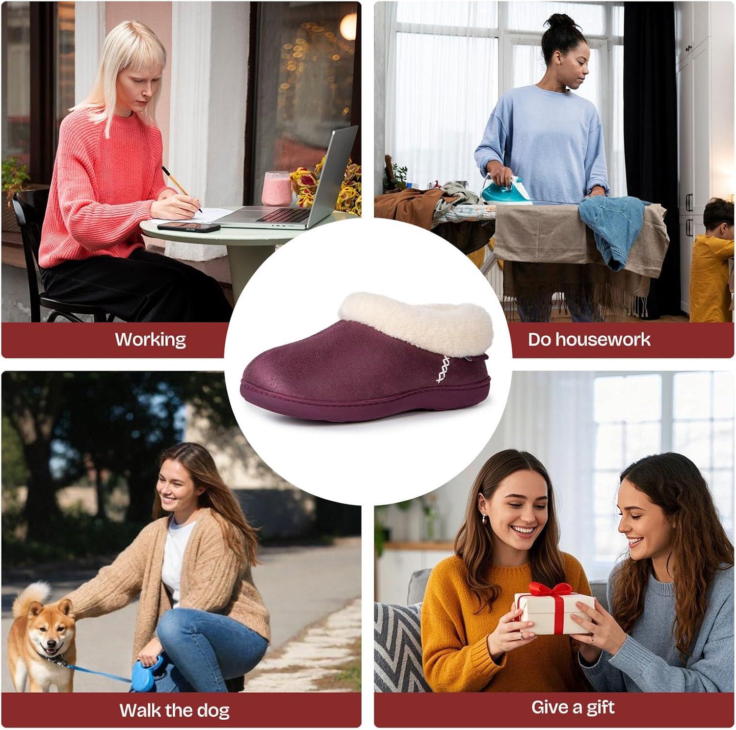 EverFoams Women’s Microsuede Cozy Memory Foam Winter Slippers with Fuzzy Faux Fur Collar and Indoor Outdoor Rubber Sole(Purple)