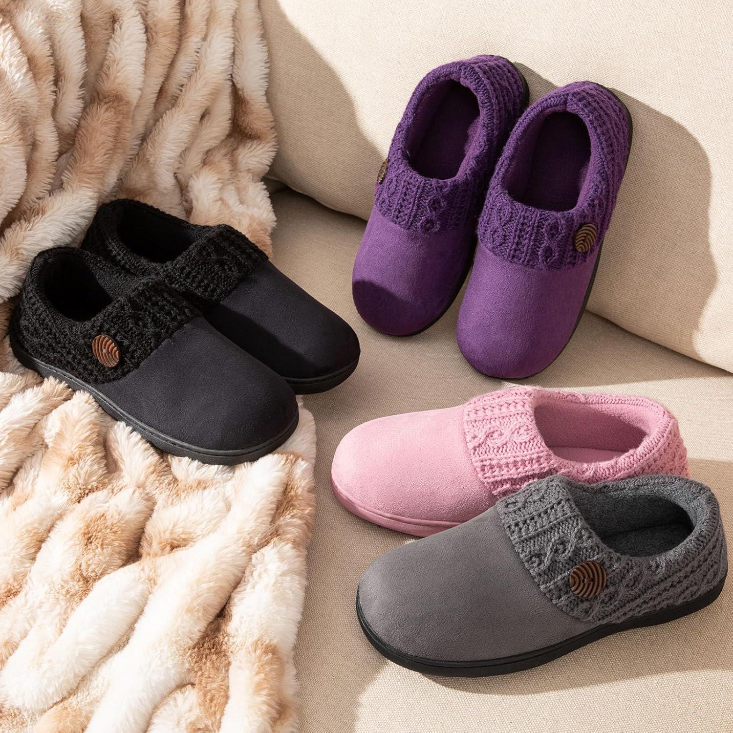 EverFoams Women’s Microsuede Slippers Warm Comfy Memory Foam Indoor House Shoes with Knit Collar(Purple)
