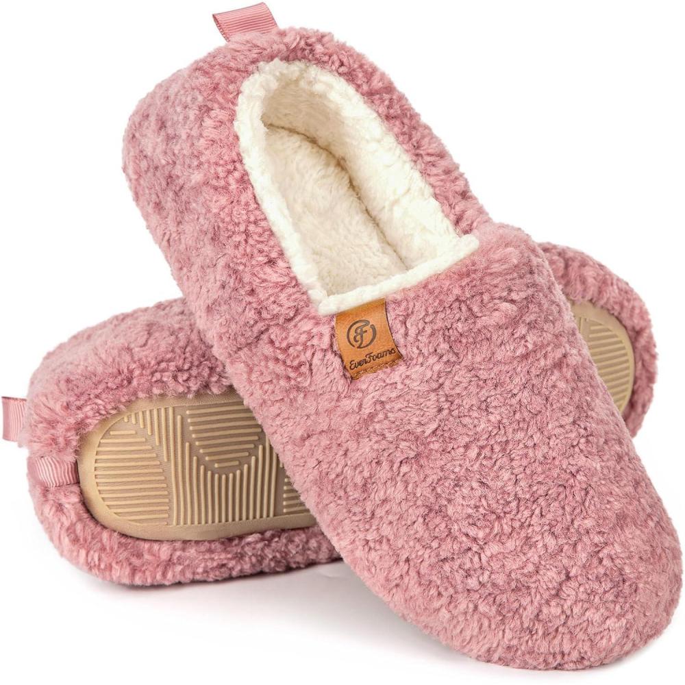 EverFoams Women’s Soft Curly Full Slippers Memory Foam Lightweight House Shoes Cozy Loafer with Polar Fleece Lining(Pink)
